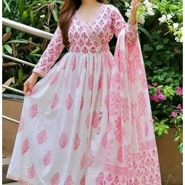 anarakali kurti and dupatta pink