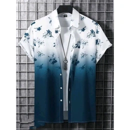 BLUECORP ENTERPRISE Men Regular Fit Floral Print Cut Away Collar Casual Shirt (X-Large, Blue)