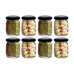 bull; These kitchen glass jars Suitable To Use Multipurpose Storage With Airtight Cap .bull; Crown shape glass jar storage jars suitable for kitchen storage cabinetsbull; Safe storage of food, as compared to plastic jars. Suitable to use multipurpose storage with airtight capbull; Special Coating Given In The Cap Inside To Avoid Any Type Of Problem In The Item You Store In .Suitable to use multipurpose storage with an airtight cap. dry fruit containers Waterproof Glass Canister Set with tops is exceptionally simple to clean sugar, canine treats, herbs, oats, snacks, coffee, pasta, flavors, and tea. Well, lovely much anything. They're awesome for things around your kitchen like cookies Screws, nails, bolts, and other little accessories They're extreme and strong sufficient for utilize in a carport or shop as well for putting away little tools Some clients like to utilize them for DIY pickling and canning at home. Rustproof cap .no problem to store your food items too. These jars are beautiful, functional, and versatile. Perfect for storing craft supplies; ribbons, beads, and pins. Use round jars in your kitchen to store bulk spices or loose leaf teas, sugar, honey and peanut butter