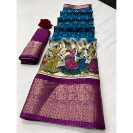 Super pure dola silk Sparkle zari bandhani printed fancy Collections of Sarees with Contrast jacquard Border , Pallu and Blouse. Premium Quality Assured. Very Soft Fabric and Beautiful Border and Pallu with Contrast Blouse.dola silk is most Demanding in S