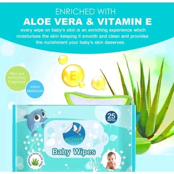 Product Name: GLIDER Baby Wipes | 25 Wipes/Pack | Soft and Thick | Aloe Vera & Vitamins | (Pack of 3 ( 75 Wipes )