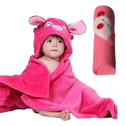 Aggarwal Creations Embroided Printed both side Swaddling Baby Blanket and Embroided Cartoon Hooded Fleece Blanket