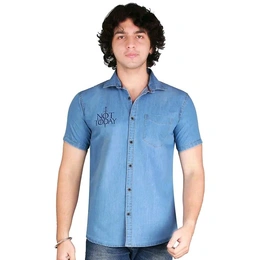 Name: Men' s Denim Stylish Printed Light Blue Half Shirts