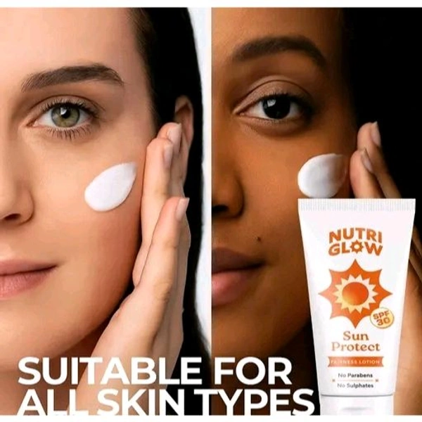 Protect and pamper your skin with NutriGlow Sunscreen Fairness Lotion SPF 30 PA+++. Designed to provide superior sun protection while enhancing your natural glow, this lightweight sunscreen lotion is perfect for daily use. Whether you're stepping out for errands or enjoying a sunny day outdoors, this lotion keeps your skin safe and radiant.