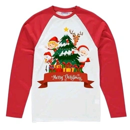 Name: PrintEasy® Very Merry Christmas Printed Cotton Round Neck Long Sleeves Unisex Red and White Kids T-Shirt for Boys & Girls
