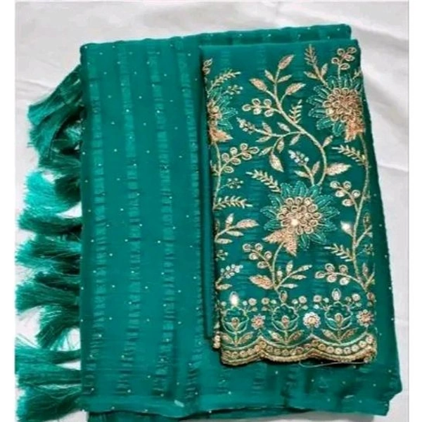 Make every occasion unforgettable with the Rama Saree Solo Pattern Jalar Chati Embellished with Embroidered Blouse. Add it to your collection today!