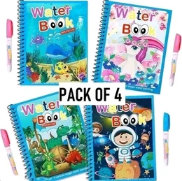 Name: Reusable Magic Water Book Quick-Dry Coloring Book with Magic Pen – Doodle and Painting Board for Children's Educational Drawing Pad (Assorted Colors & Random Designs, Pack of 4)