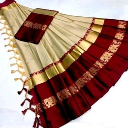 Cotton Silk, Saree Hathi Saree Enugu Saree Anugu Saree, Enogo Saree, Anogo SareeOr Elephant Design Specially Famous In South Region Golden Heavy Belt Design For Rich Looks, combination of Modern And Traditional Design Buy this to Charm Your Natural Beauty. ( Cut Blouse From Saree - Running)