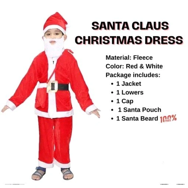 Name: Santa Claus Costume Dress Kids Christmas Costume - Complete Set of Jacket,Pant,Hat,Pouch & Beard | Red & White Fancy dress Costume Wear