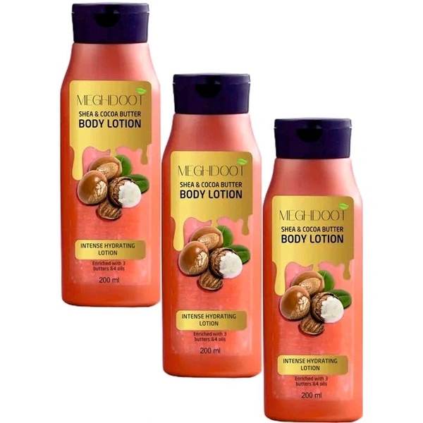 Meghdoot Shea & cocoa butter body lotion with 100% natural moisturizers is a non-greasy , quick absorbing formulations. It gives a long lasting and intensive moisturization, leaving your skin soft & smooth in harsh winter .It is unique of shea , cocoa & kokum butter along with deep hydrating oils of olive , almond, coconut & sesame which helps in healing day & damaged skin.