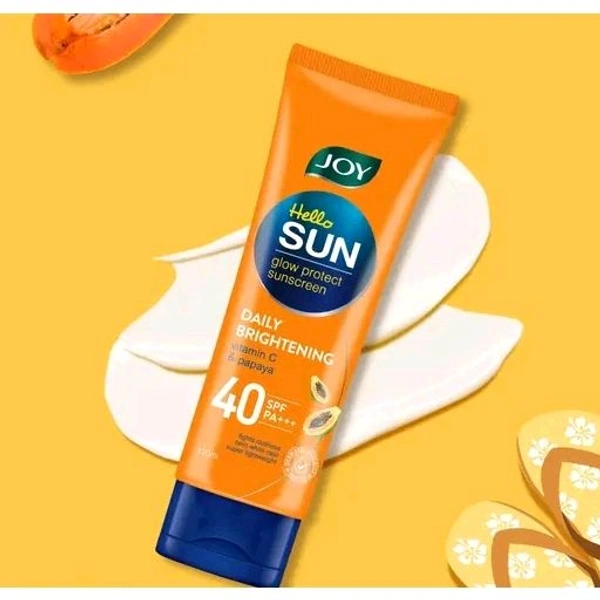 Protect your skin from the harsh rays of the sun while keeping it radiant and nourished with the Joy Hello Sun Sunblock & Anti-Tan Lotion SPF 40, PA+++. Perfect for all skin types, this lightweight, non-greasy sunscreen is designed to shield your skin from harmful UVA and UVB rays while fighting tanning and dark spots. Infused with the goodness of papaya, this sunscreen not only protects your skin but also helps enhance your natural glow.