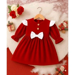 baby frock, winter frock, baby girl dress, party wear frock, Christmas frock, full sleeve dress, red frock, black frock, bow frock, festive wear, kids frock, birthday dress, toddler frock, newborn dress, stylish kids wear, warm winter dress