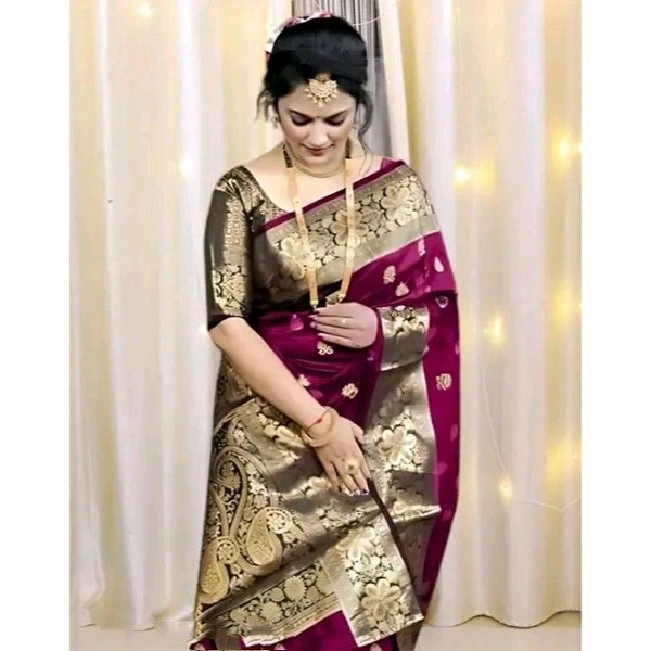 Name: Women's Kanjivaram Soft Banarasi Silk Saree With Blouse Piece Wine