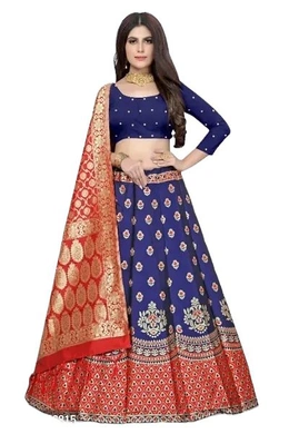 Womens Self Design Art Silk Semi Stitched Lehenga Choli